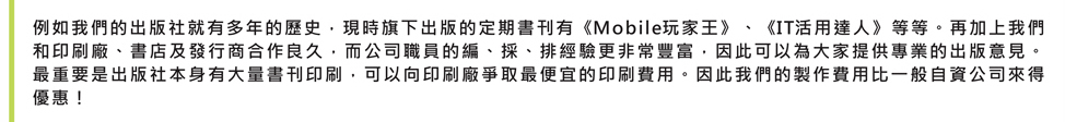 我們更提供出版書刊服務,由設計、排版、印刷、發行,一手包辦,為大家提供最貼心的服務。