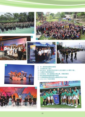 8 10 9 12 11 13 8. 中一軍事領袖歷奇訓練營 9. 中四級秋季大旅行 10. 學生參加「香港各界紀念孫中山先生誕辰 150 周年大會」 11. 九龍城中學展覽資訊日 12. 交安參加「東九龍總區步操比賽」榮獲四連冠 13. 學校舞蹈節舞蹈團榮獲甲級獎 14. 中樂團應無線電視翡翠台邀請訪問並作表演 15. 2016-2017 年度校運會 15 14 23 22 23 22