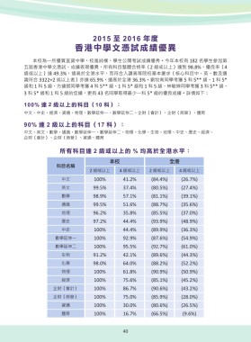 五屆香港中學文憑試,成績表現優異,所有科目整體合格率(2 級或以上)達到 98.8%,優良率(4
