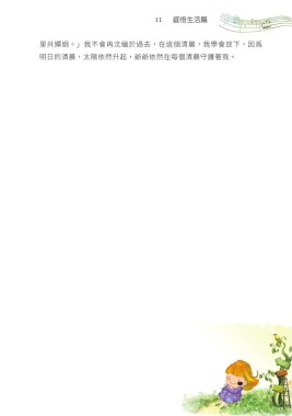 11 感悟生活篇 里共嬋娟。」我不會再沈緬於過去,在這個清晨,我學會放下,因爲 明日的清晨,太陽依然升起,爺爺依然在每個清晨守護著我。