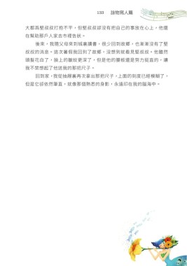 133 詠物寫人篇 大都爲堅叔叔打抱不平,但堅叔叔卻沒有把自己的事放在心上,他還 在幫助那戶人家去市裡告狀。 後來,我隨父母來到城裏讀書,很少回到故鄉,也漸漸沒有了堅 叔叔的消息。這次暑假我回到了故鄉,沒想到就看見堅叔叔。他雖然 頭髮花白了,臉上的皺紋更深了,但是他的腰板還是努力挺直的,讓 我不禁想起了他送我的那把尺子。 回到家,我從抽屜裏再次拿出那把尺子,上面的刻度已經模糊了, 但是它卻依然筆直,就像那個熟悉的身影,永遠印在我的腦海中。