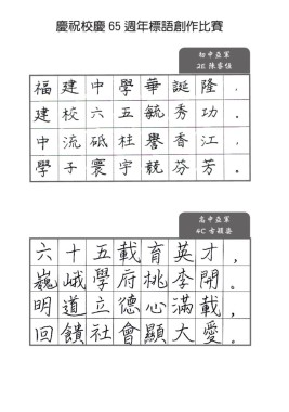慶祝校慶 65 週年標語創作比賽 初中亞軍 2E 陳睿恆 高中亞軍 4C 古穎姿