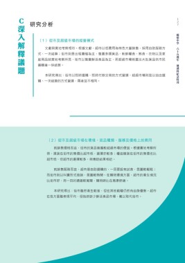 文獻與實地考察相符。根據文獻,超市以低費用為特色大量銷售,採用自助服務方 六十五週年