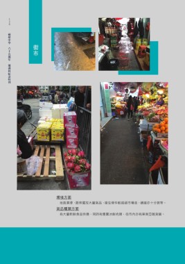 0 0 0 福建中學 街市 六十五週年 通識科紀念特刊 環境方面 地面濕滑, 路旁擺放大量貨品, 衛生條件較超級市場差, 通道亦十分狹窄。 貨品種類方面 有大量新鮮食品供應,同時有售賣冰鮮肉類,街市內亦有東南亞雜貨鋪。