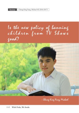 Society Chung King Yung, Michael 4E (2016-2017) Is the new policy of banning children from TV Shows good? - Chung King Yung, Michael 114 With Pride, We Stride