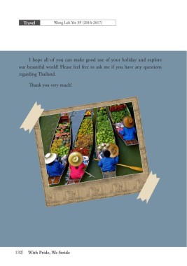 Travel Wong Lok Yee 3F (2016-2017) I hope all of you can make good use of your holiday and explore our beautiful world! Please feel free to ask me if you have any questions regarding Thailand. Thank you very much! 132 With Pride, We Stride