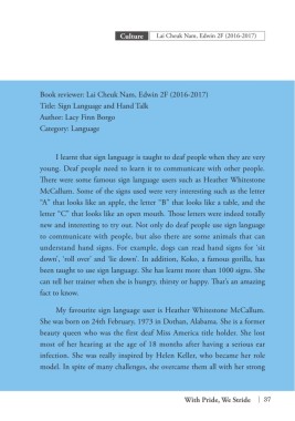 Book reviewer: Lai Cheuk Nam, Edwin 2F (2016-2017)