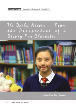 Personal Growth Shum Kam Yuk, Joanna 6F (2016-2017) The Daily Nerves ─ From t he Pe r s pe ct iv e of a Disney Fur Character - Shum Kam Yuk, Joanna 70 With Pride, We Stride