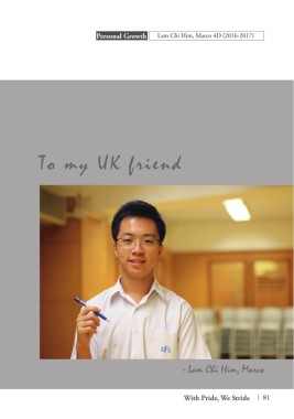 Personal Growth Lam Chi Him, Marco 4D (2016-2017) To my UK friend - Lam Chi Him, Marco With Pride, We Stride 81