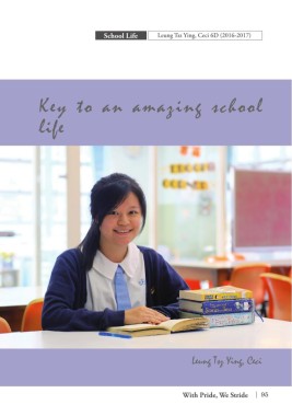 School Life Leung Tsz Ying, Ceci 6D (2016-2017) Key to an amazing school life Leung Tsz Ying, Ceci With Pride, We Stride 95