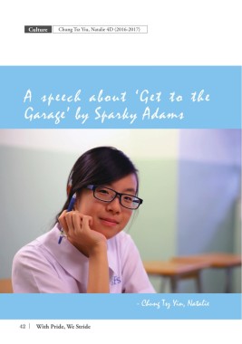 Culture Chung Tsz Yiu, Natalie 4D (2016-2017) A speech about ‘Get to the Garage’ by Sparky Adams - Chung Tsz Yin, Natalie 42 With Pride, We Stride