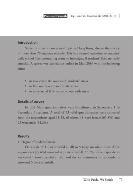 Secondary 5 students. A total of 73 valid questionnaires were collected